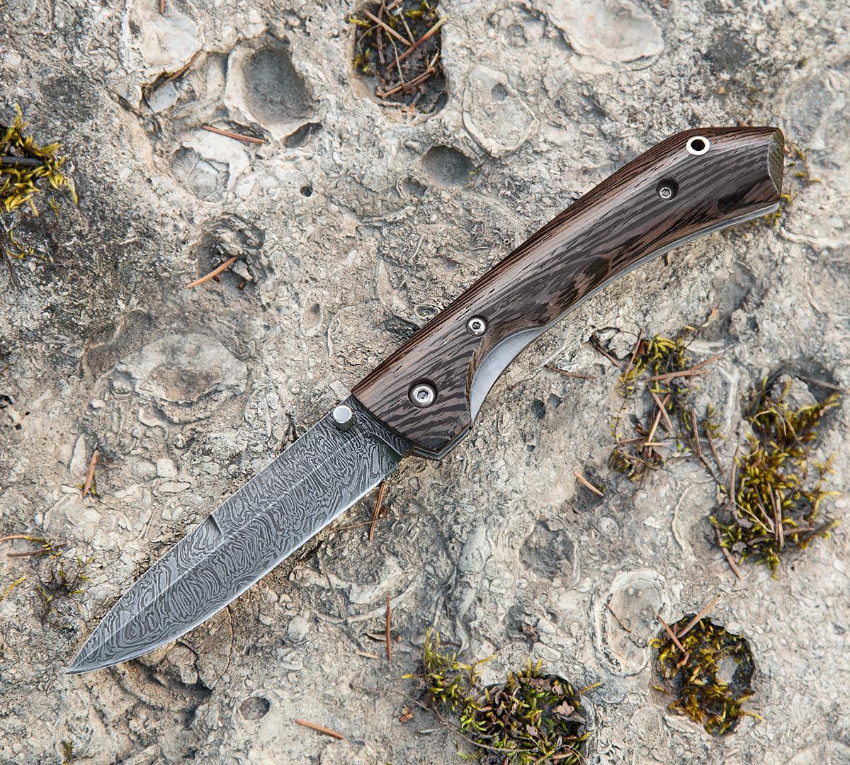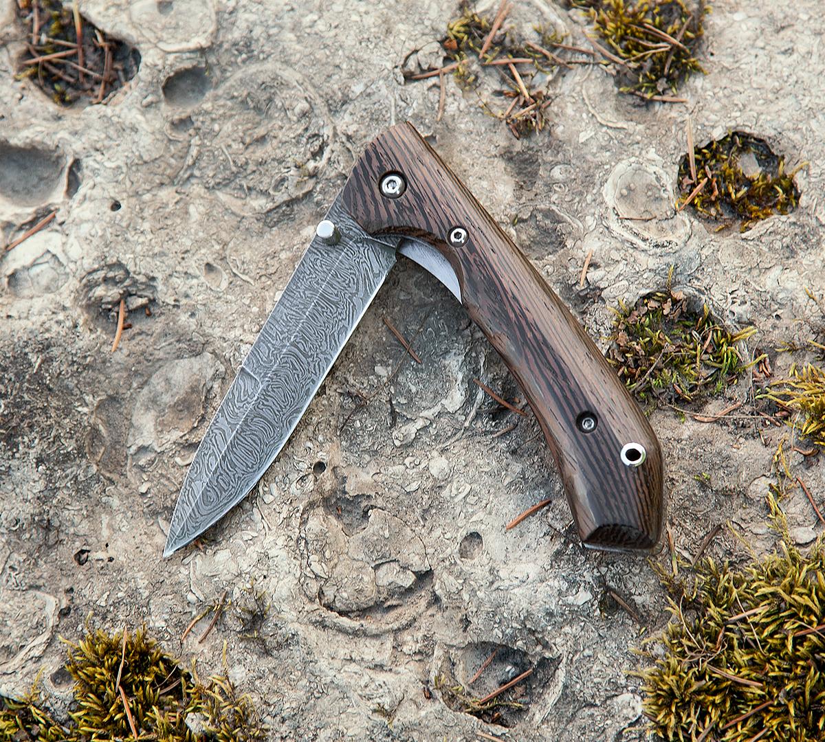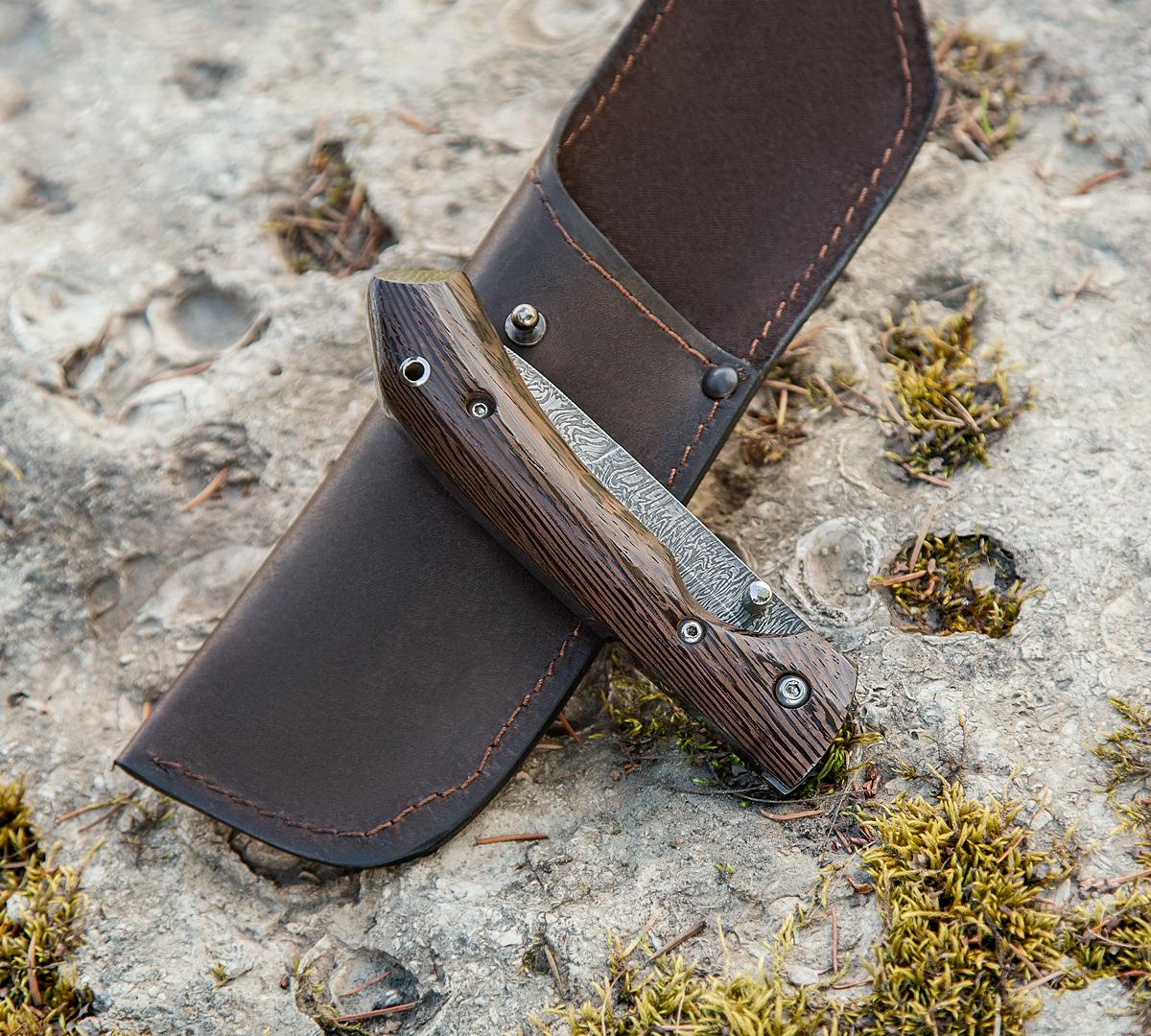Нож Складной №3 из дамасской стали, рукоять - венге.